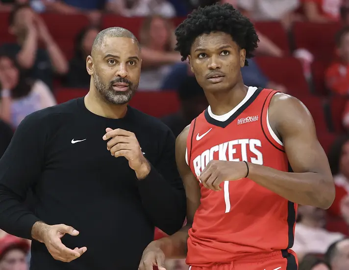 火箭队靠着重大的声威深度和杜兰特的巨星智商强撑,阿门和谢泼德的超过也肉眼可见,可从申京在火箭队VS独行侠队的比赛中脚踝受伤退赛初始,火箭队遑急艰苦章法的短板透彻骄横放大。火箭队主场迎战太阳队,全队仅20次助攻,造作却高达14次,三分线外37投仅9中,三分球掷中率仅有24.3%。火箭队在过时13分的情况下靠着杜兰特的三分绝杀逆天改命,3分险胜。火箭队赶赴客场挑战开荒者队,全队仅20次助攻,造作又有14次,三分线外36投仅8中,三分球掷中率仅为22.2%,杜兰特绝杀中投弹框而出,伊森压哨补篮绝杀超时,火箭队1分惜败。